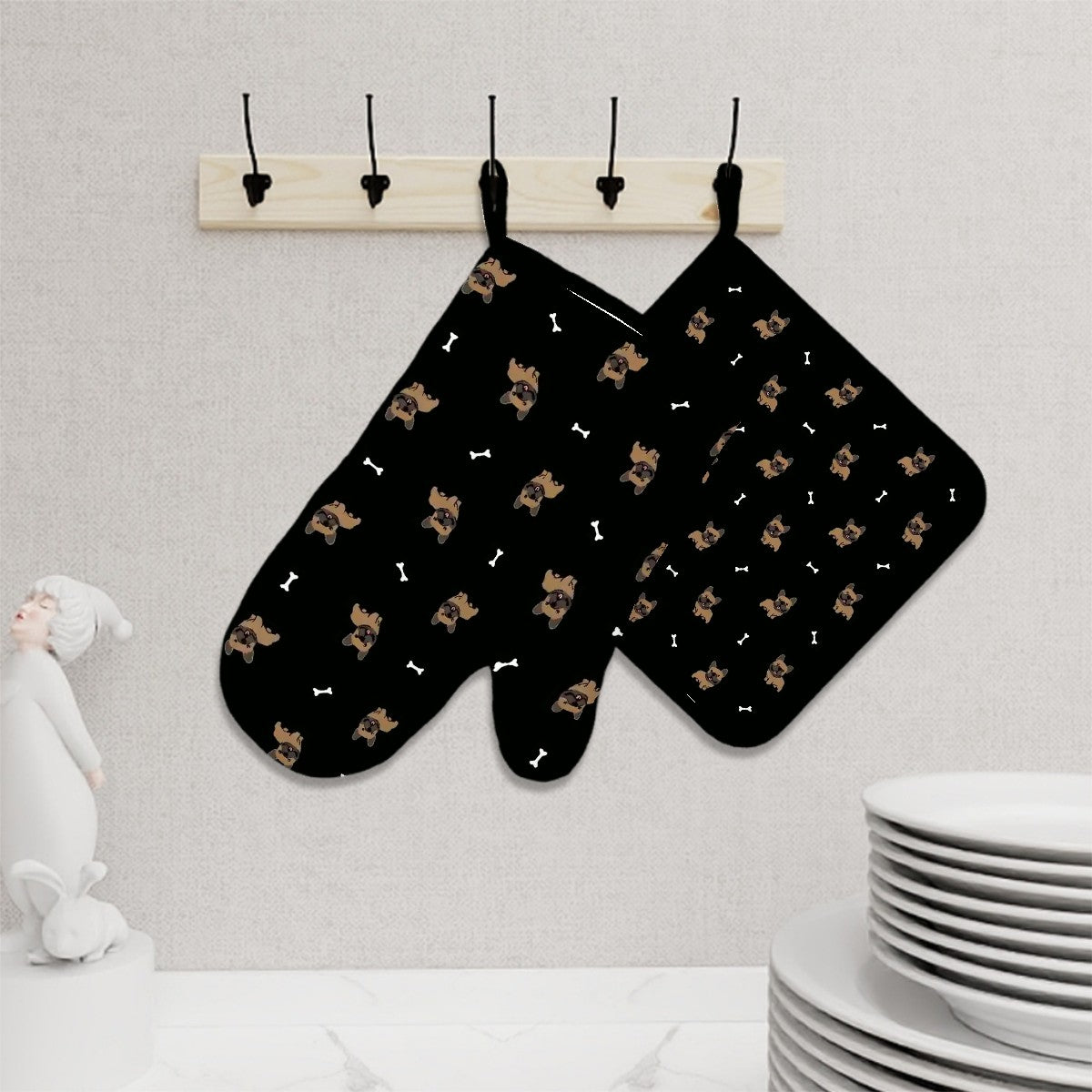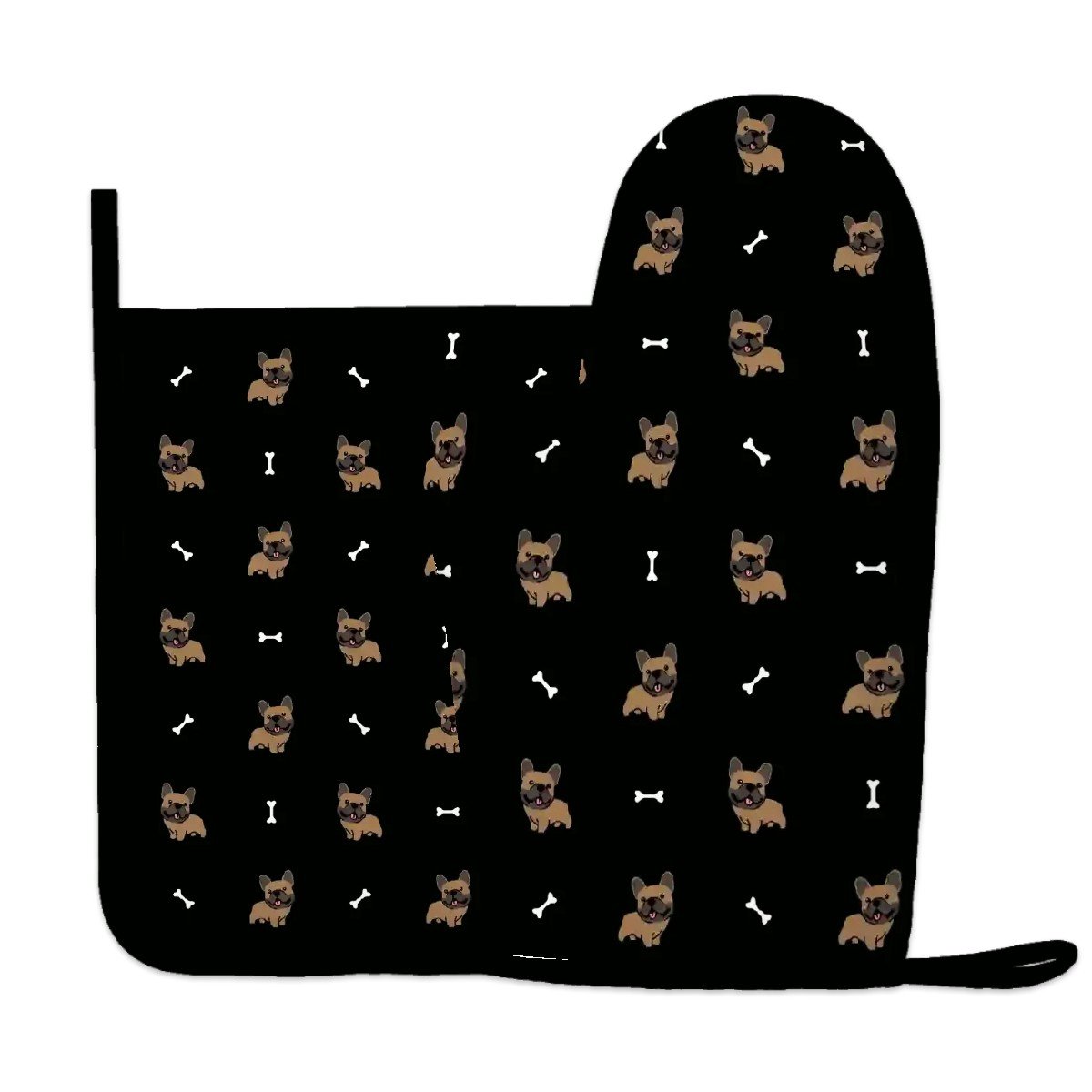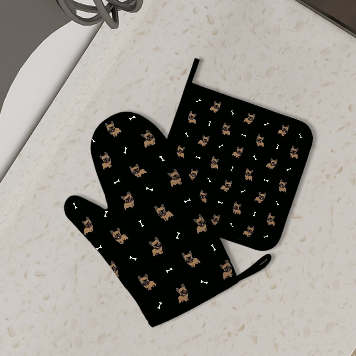 French Chocolate Bulldog Charm Oven Mitts and Pot Holder Set