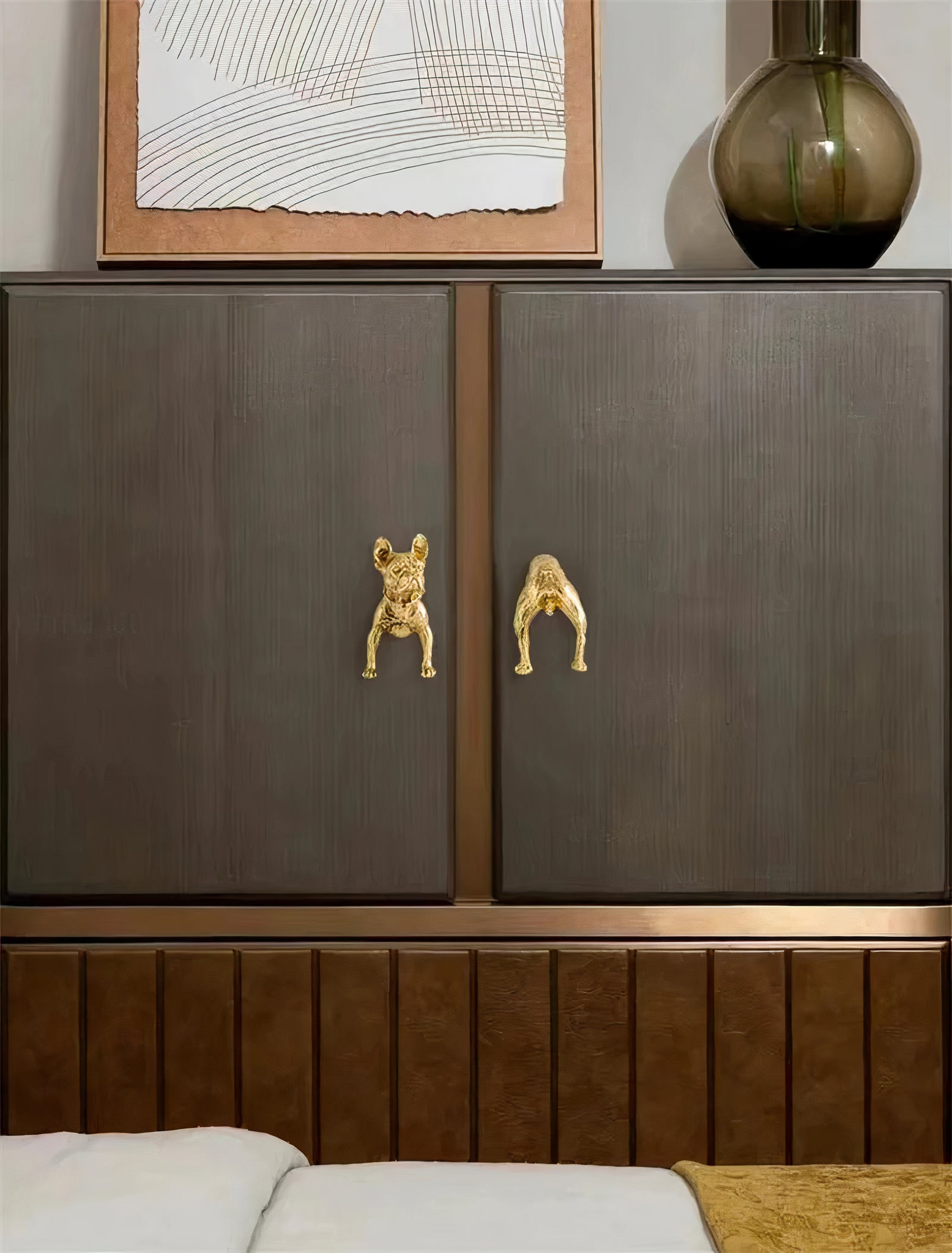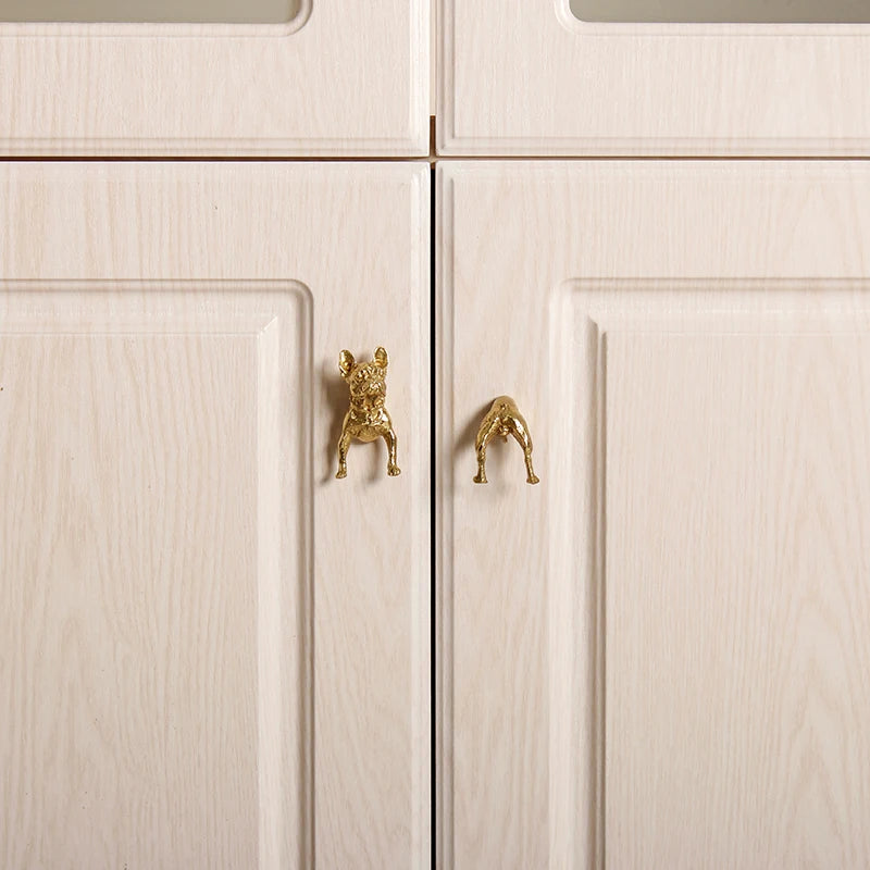 Transform Your Home with Golden French Bulldog Brass Drawer Pulls.