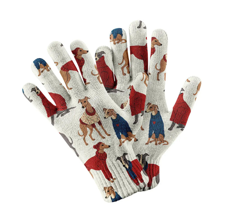 Greyhounds in Festive Winter Wear Touch Screen Gloves