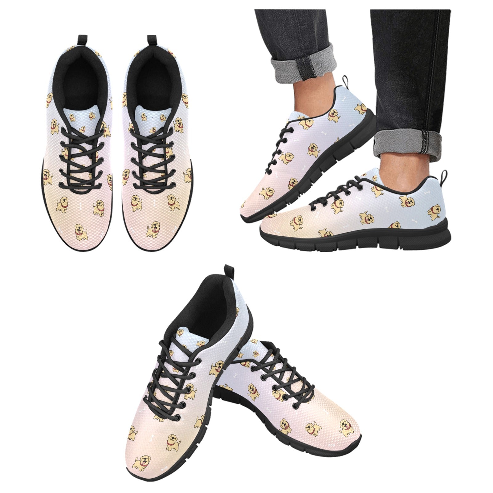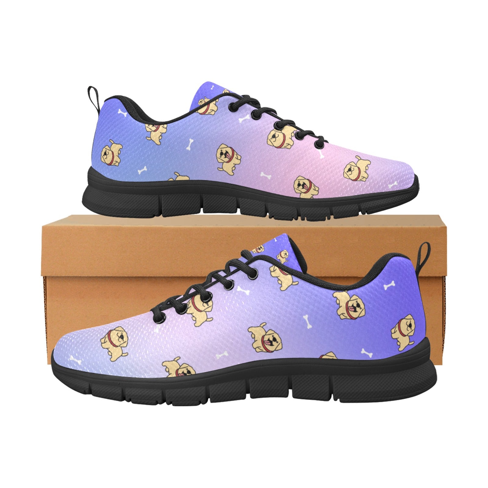Happy Cute Yellow Labrador Women's Breathable Sneakers - 7 Gradients-Black-US13-47