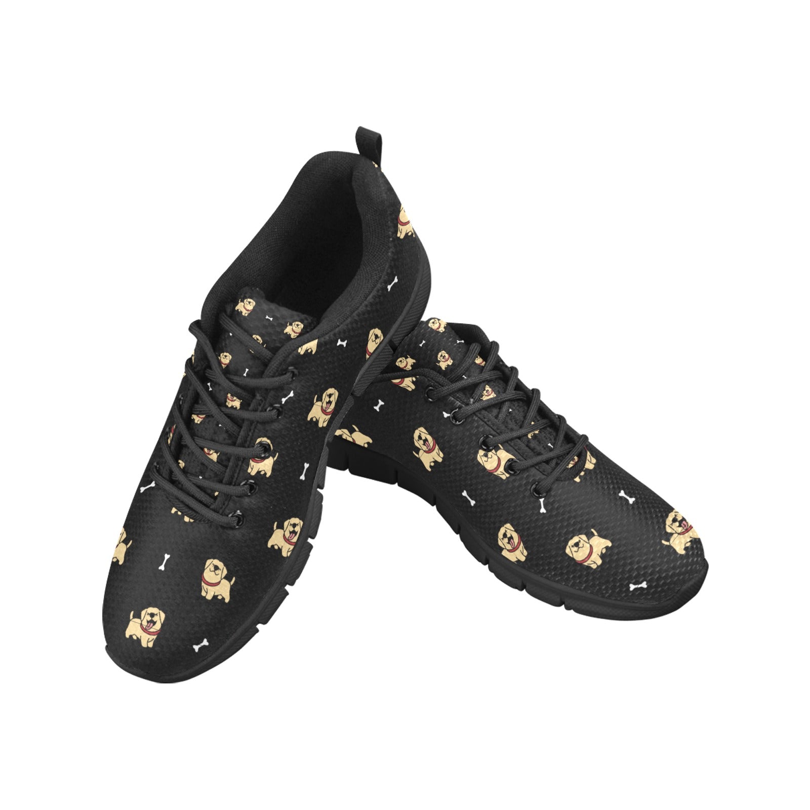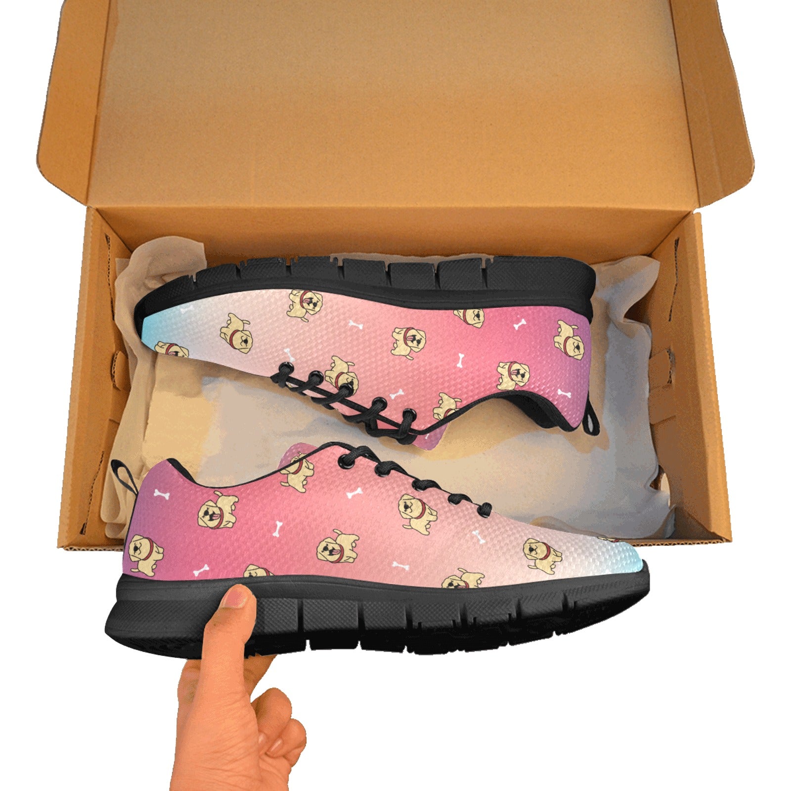 These sneakers feature a playful pattern of cheerful Pug illustrations, each radiating happiness with their signature wrinkled faces.