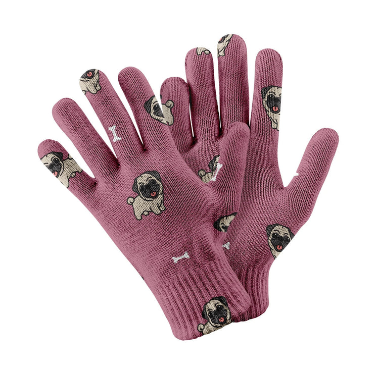 Keep your hands warm and your love for Pugs close with Happy Pug Playtime Touch Screen Gloves.