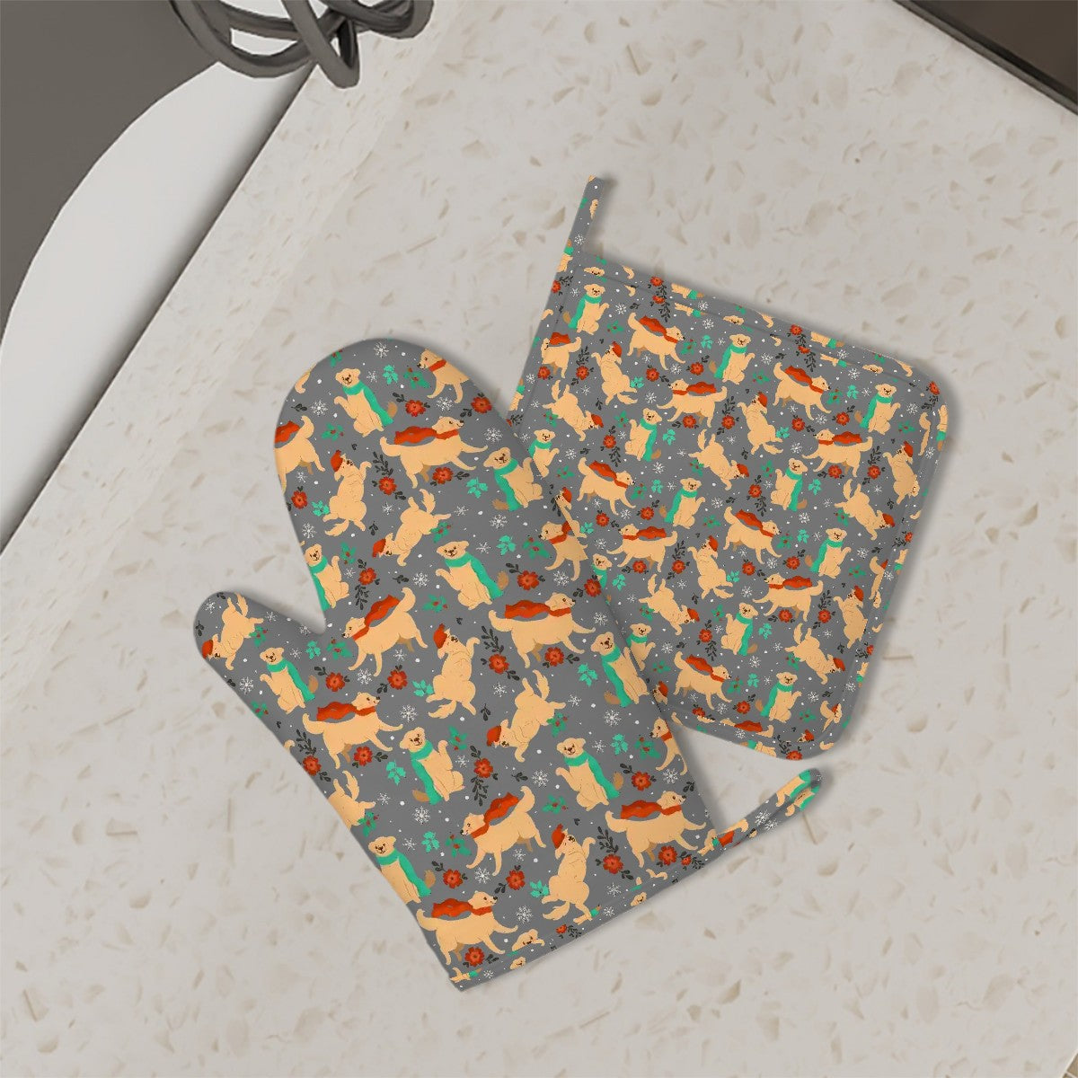 Merry Christmas Yellow Labradors Oven Mitts and Pot Holder Set-Kitchen Decor-Accessories,Dog Mom Gifts,Labrador-7