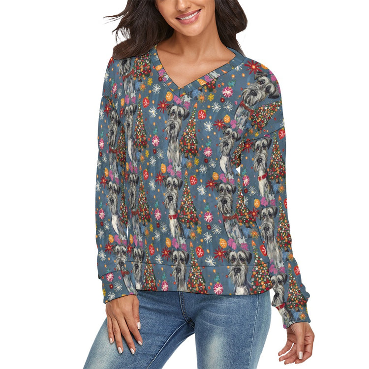 Merry Schnauzer Sparkle Women's V-Neck Christmas Sweater