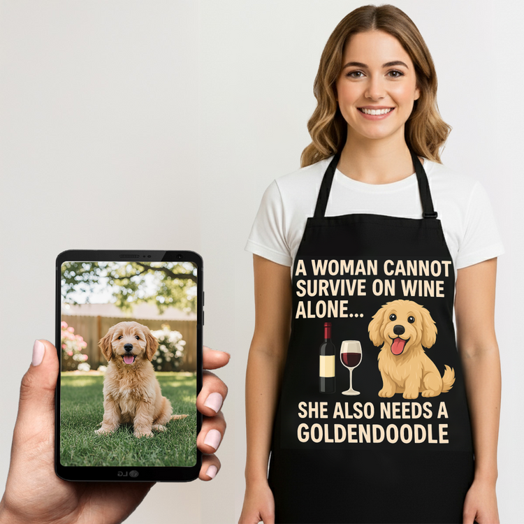 Personalized “A Woman Cannot Survive on Wine…” Goldendoodle Apron