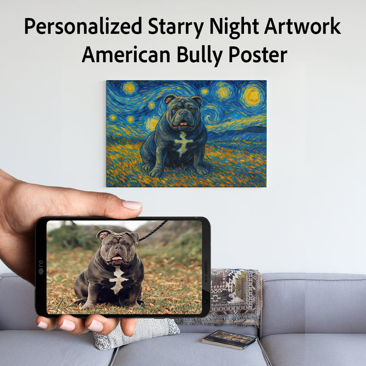 Personalized Starry Night Artwork American Bully Pre-framed Canvas Poster