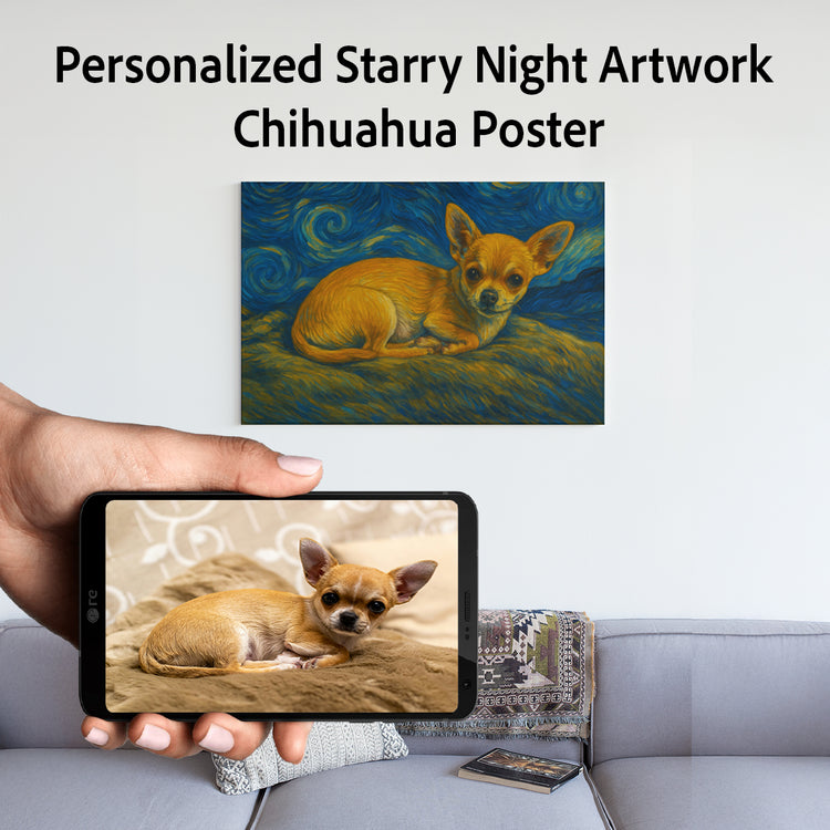 Transform your cherished memories into art with our Personalized Starry Night Artwork featuring your beloved Chihuahua.