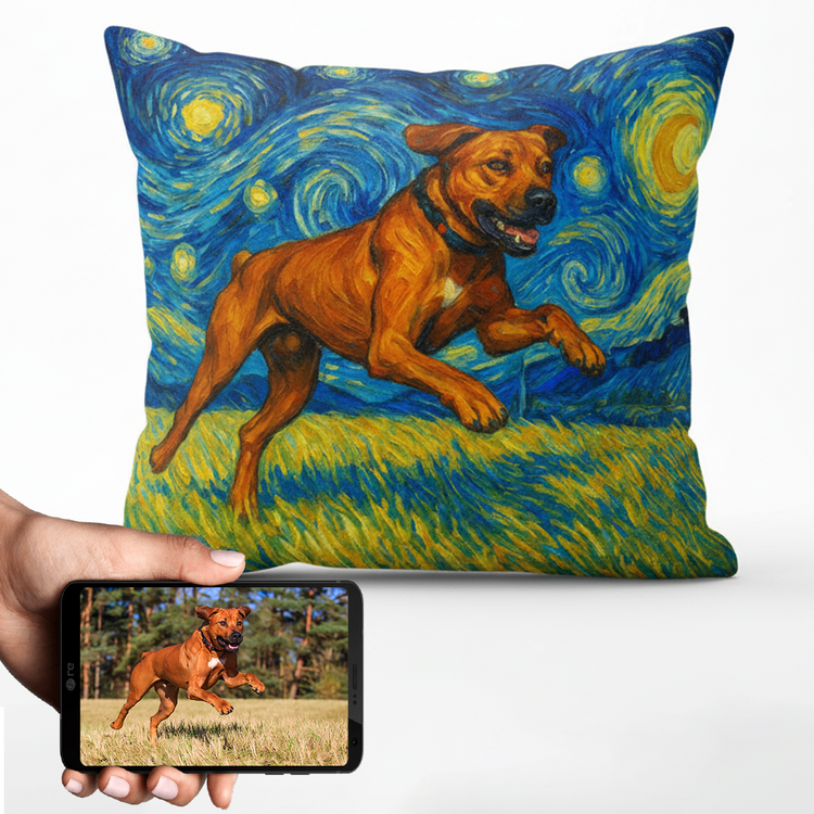 Transform your love for your Ridgeback into a stunning piece of art with our Personalized Starry Night Artwork Custom Ridgeback Pillowcase.