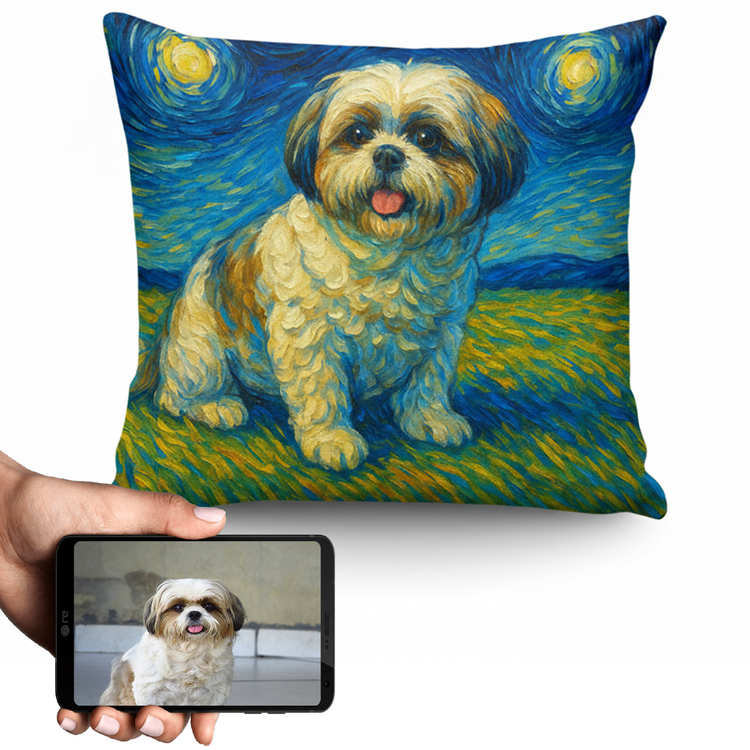 Personalized Starry Night Artwork Custom Shih Tzu Pillowcase