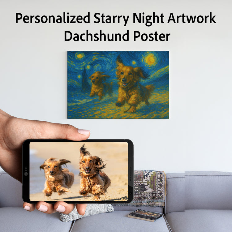 Transform your cherished Dachshund into a timeless masterpiece with our Personalized Starry Night Artwork!