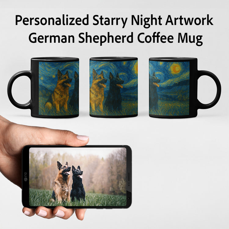 Celebrate your love for your German Shepherd with a personalized Starry Night artwork coffee mug that captures the essence of your furry friend. This unique gift is perfect for dog lovers who cherish the bond with their loyal companions.