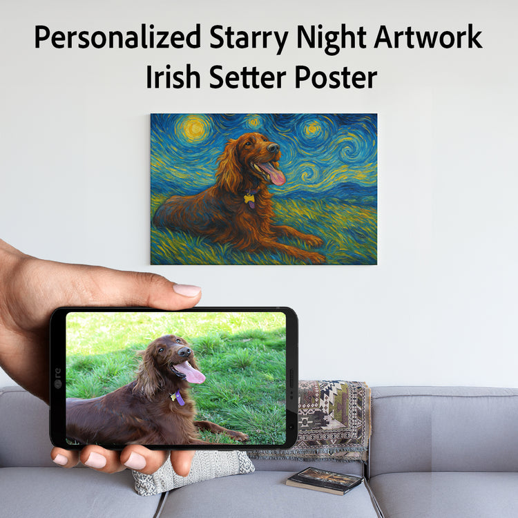 Personalized Starry Night Artwork Irish Setter Pre-framed Canvas Poster