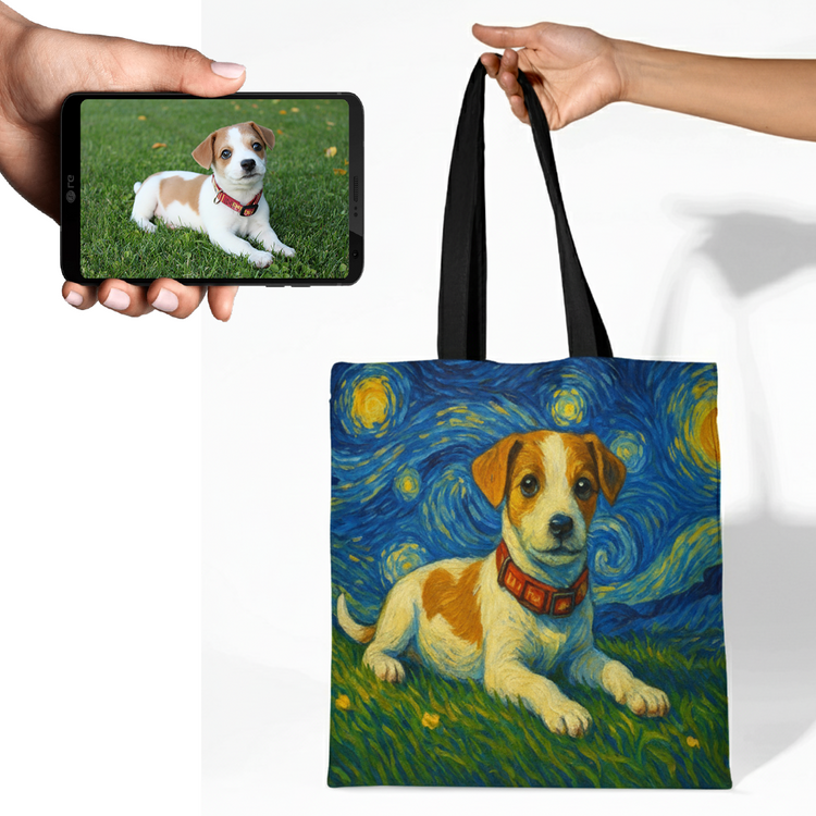 Celebrate your love for your Jack Russell Terrier with our Personalized Starry Night Artwork Canvas Tote Bags! These unique bags are perfect for dog lovers who want to carry a piece of their furry friend wherever they go.