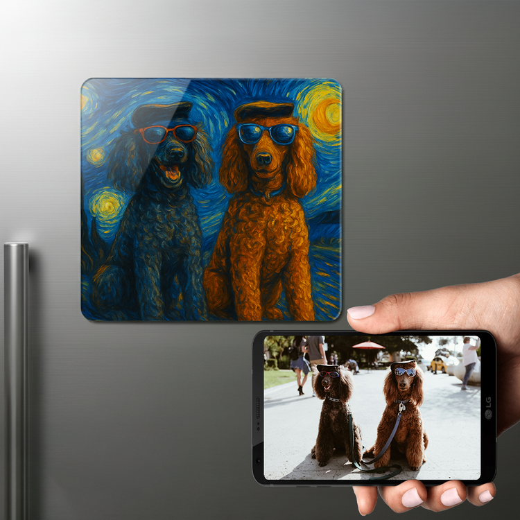 Upload a photo of your Poodle, and we’ll create a Van Gogh-inspired masterpiece just for you. Measuring 3.5” square, this acrylic magnet is a delightful way to showcase your love for your four-legged companion.