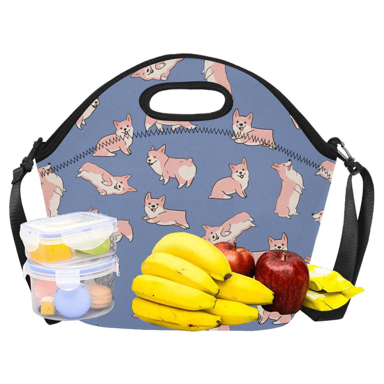 Playful Corgi Love Neoprene Lunch Bag-Slate Blue-ONESIZE-2