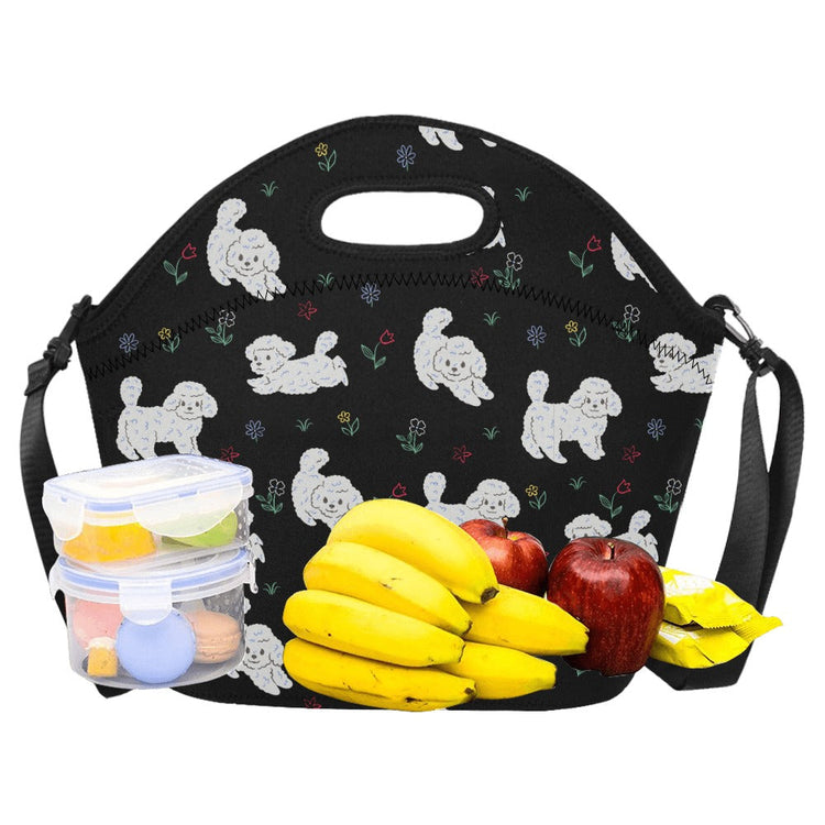 Playful Bichon Frise Love Neoprene Lunch Bag-Midnight Black-ONESIZE-2