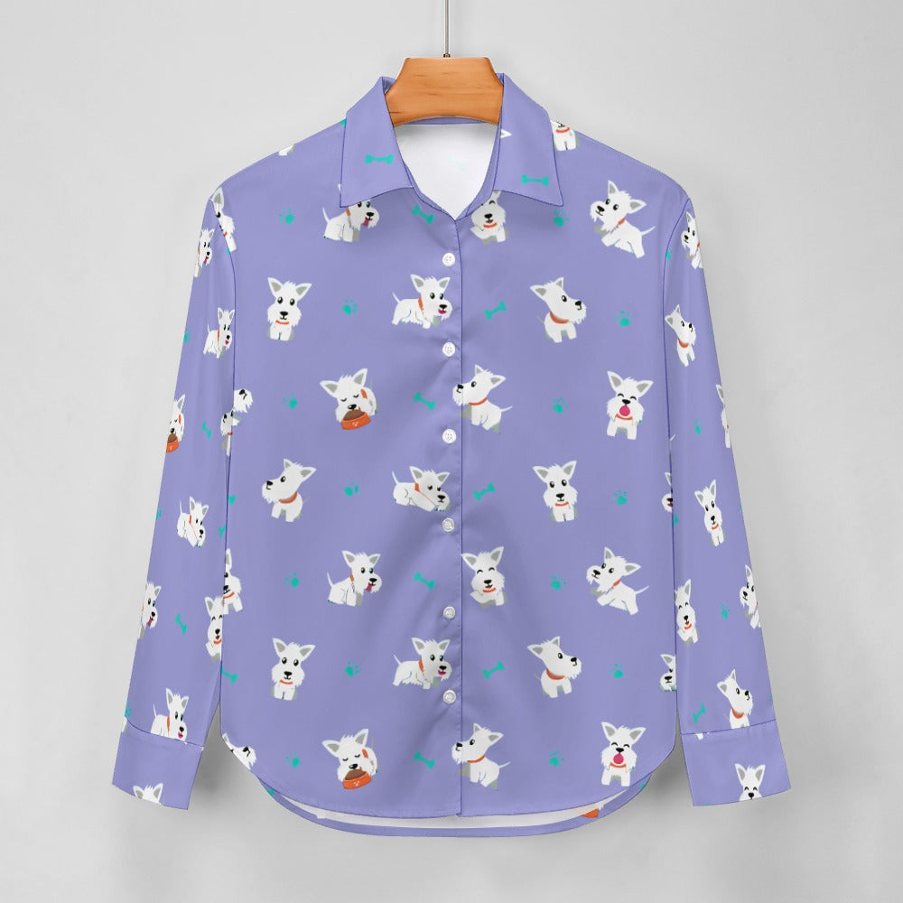 Playful Westie Adventure Love Women's Shirt-Apparel-Apparel,Dog Mom Gifts,Shirt,West Highland Terrier-S-PaleVioletRed-1