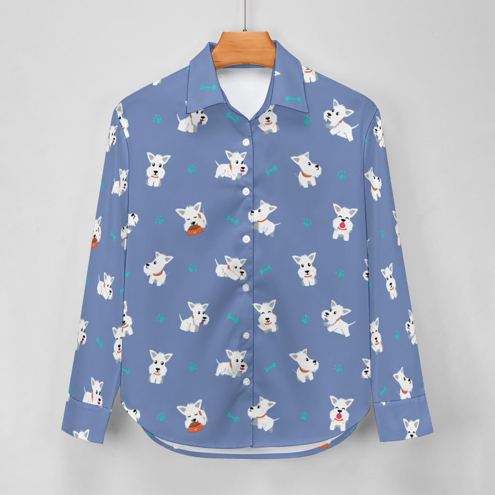 Playful Westie Adventure Love Women's Shirt-Apparel-Apparel,Dog Mom Gifts,Shirt,West Highland Terrier-S-CornflowerBlue_1-11