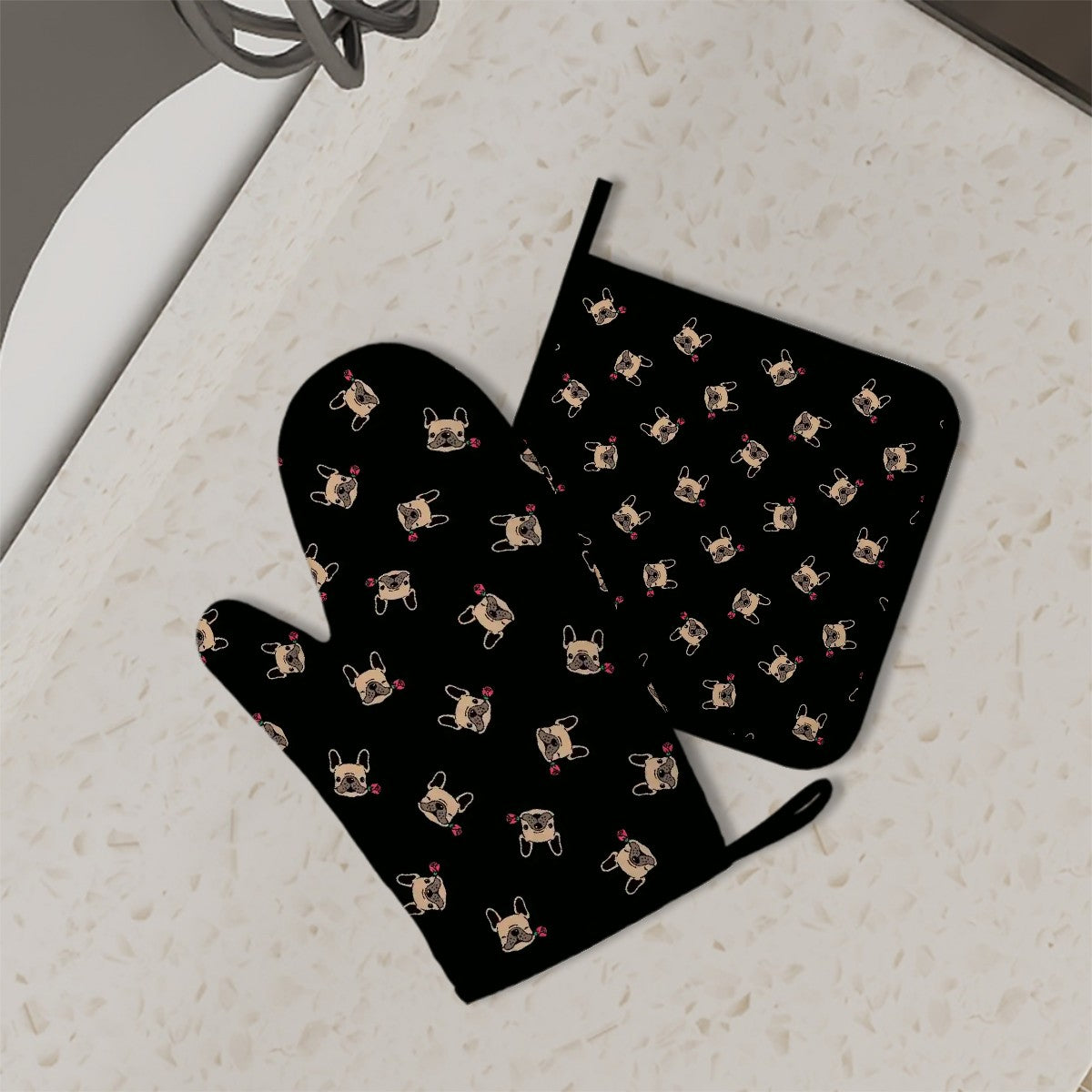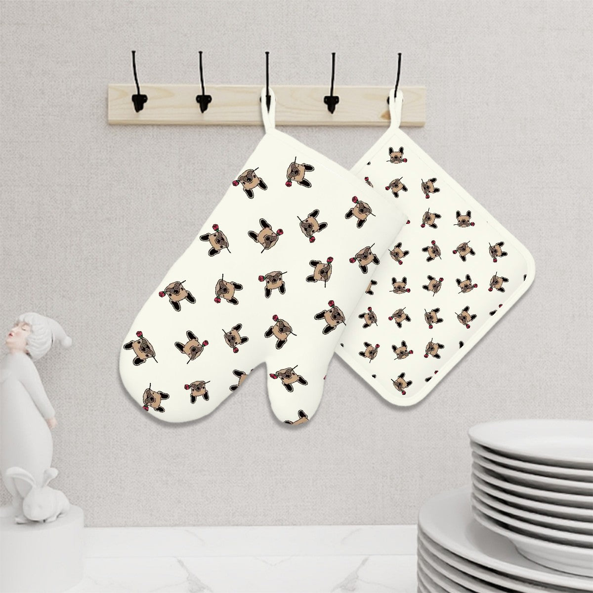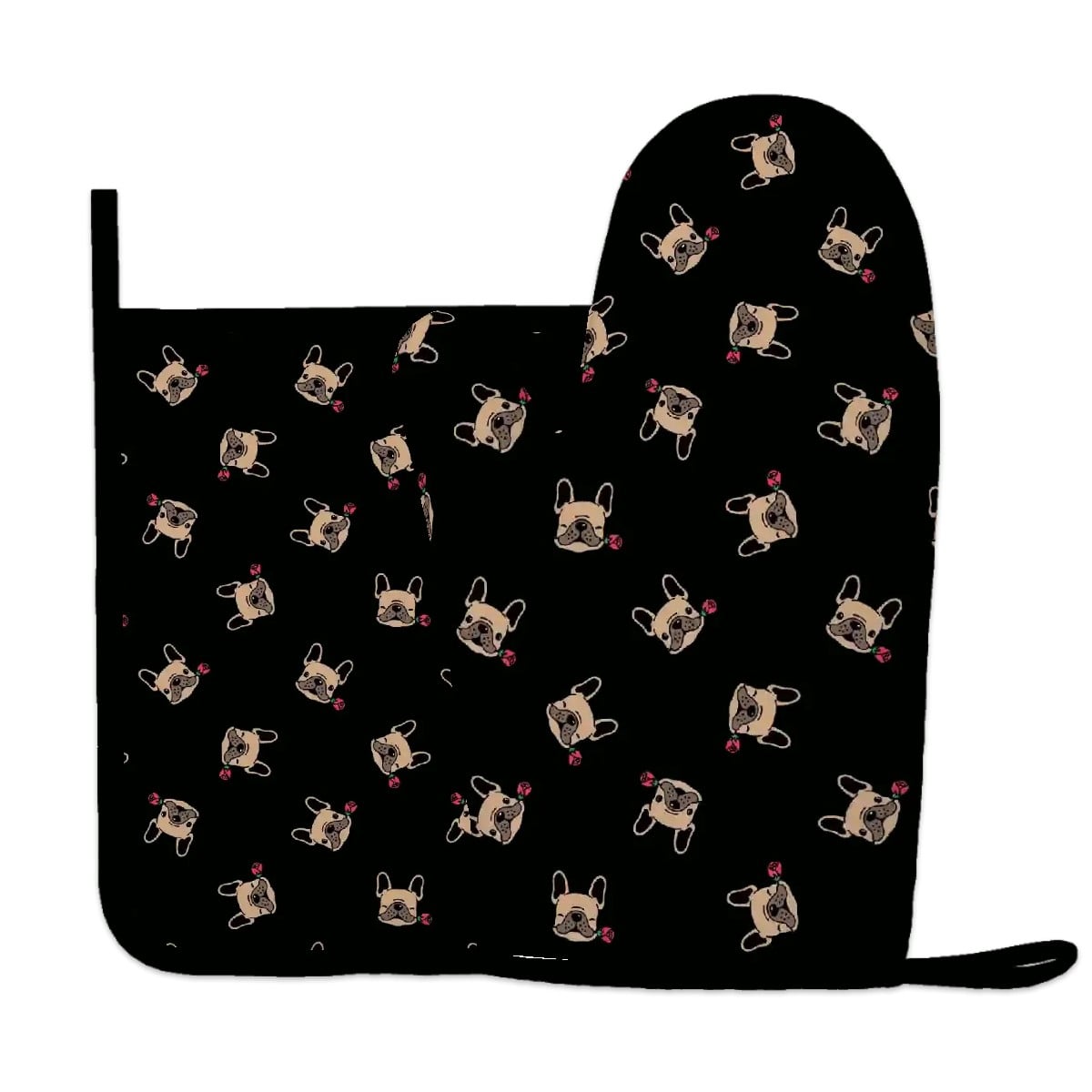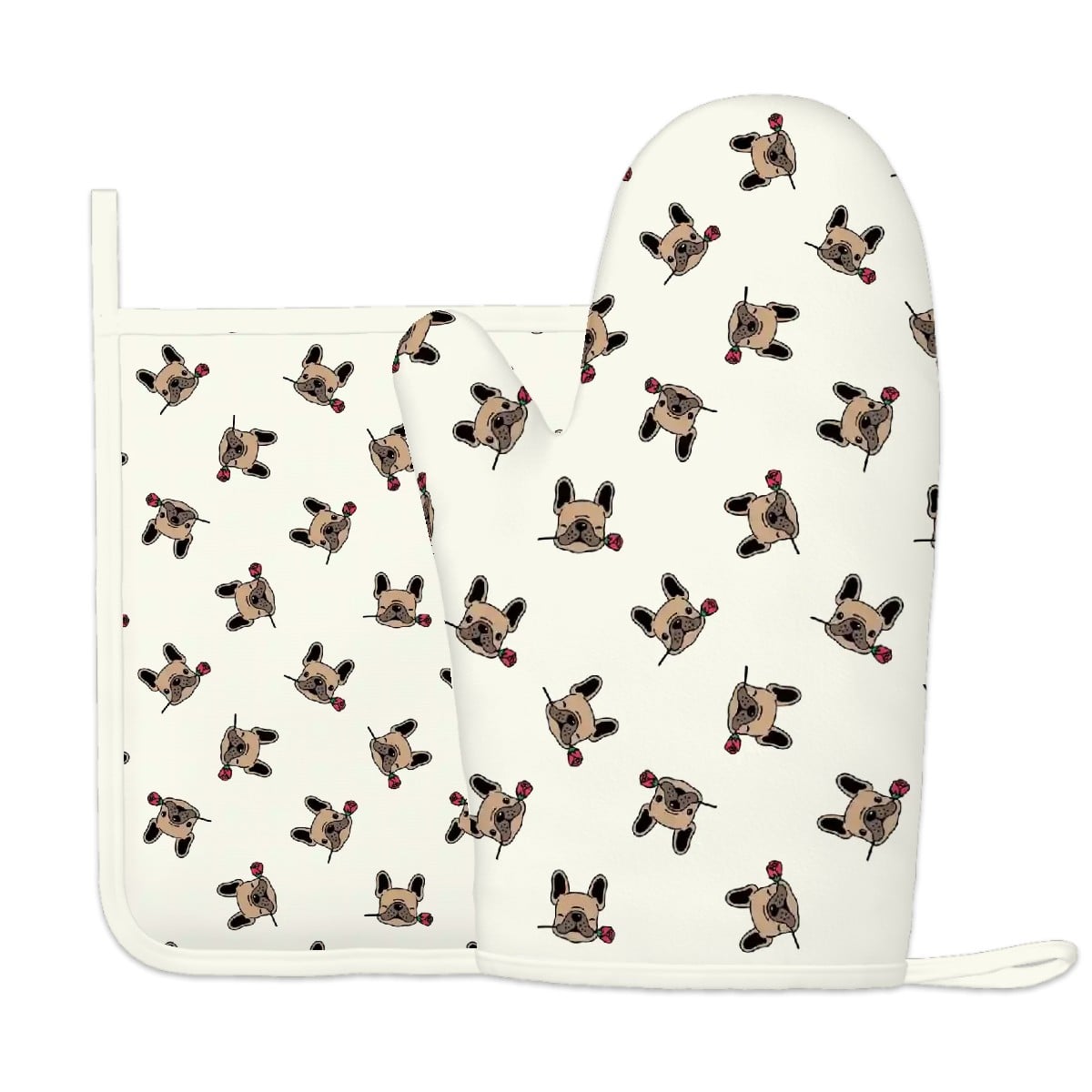 Red Rose Fawn Frenchies Oven Mitts and Pot Holder Set