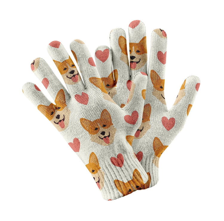 Smiling Corgi Face with Hearts Touch Screen Gloves