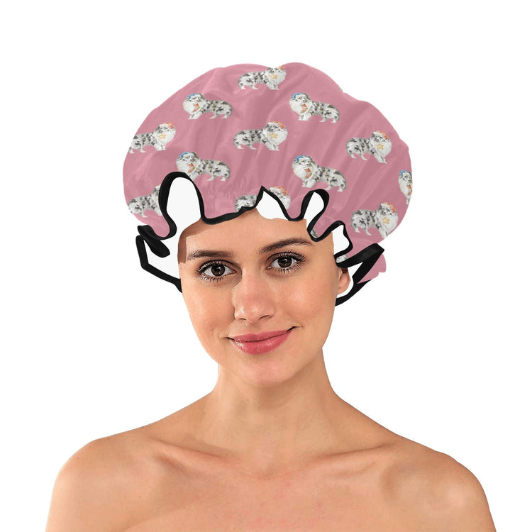 Watercolor Bi Blue Shelties Collies Christmas Elastic Reusable Shower Caps-Accessories-Accessories, Christmas, Dog Mom Gifts, Rough Collie, Shetland Sheepdog-PaleVioletRed-ONE SIZE-5