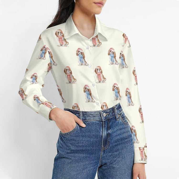 Watercolor Blenheim King Charles Spaniels Christmas Women's Shirt