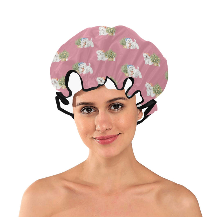 Watercolor Celebration Westie Christmas Elastic Reusable Shower Caps-Accessories-Accessories, Christmas, Dog Mom Gifts, West Highland Terrier-PaleVioletRed-ONE SIZE-4