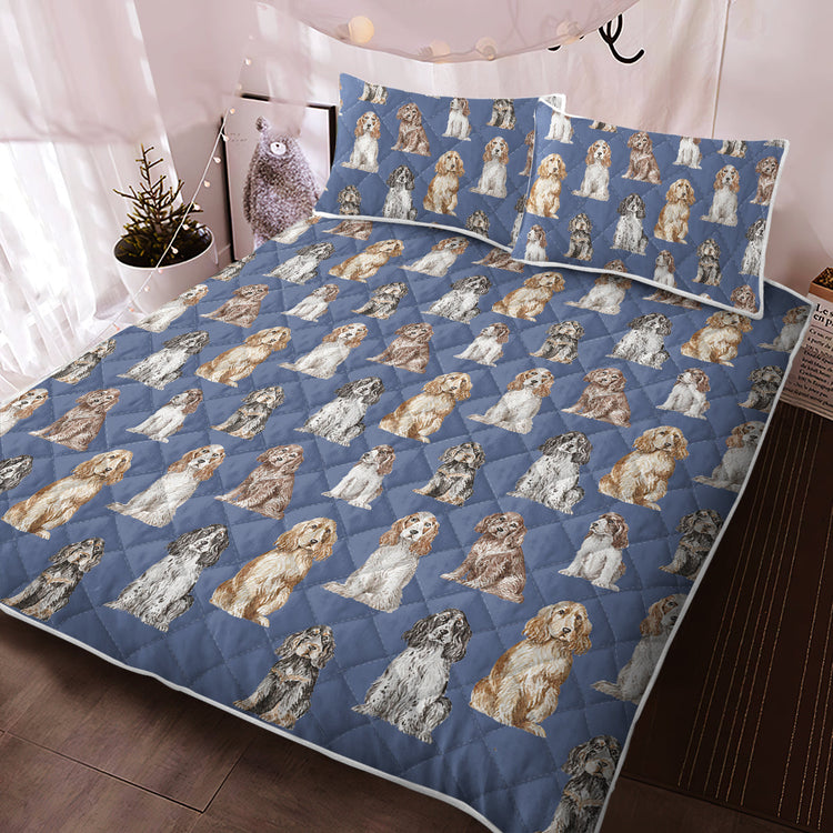 Watercolor Elegance Cocker Spaniels Quilted Bedding Set - 5 Colors