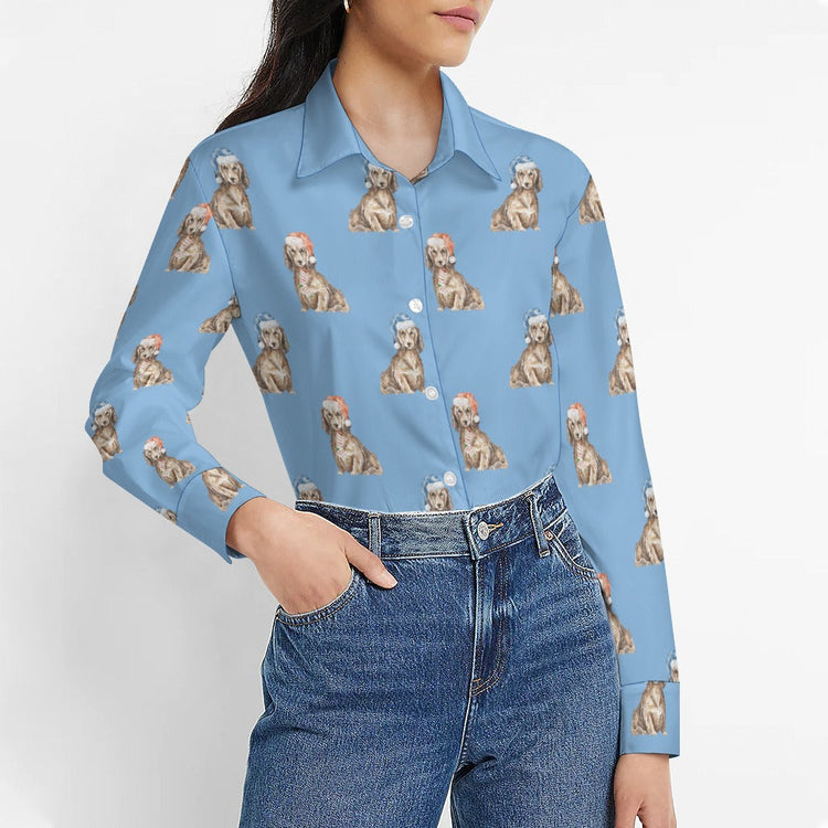 Featuring a beautiful watercolor Christmas pattern of a Long Haired Chocolate Cream Dachshund, this shirt showcases your beloved pet in exquisite detail.