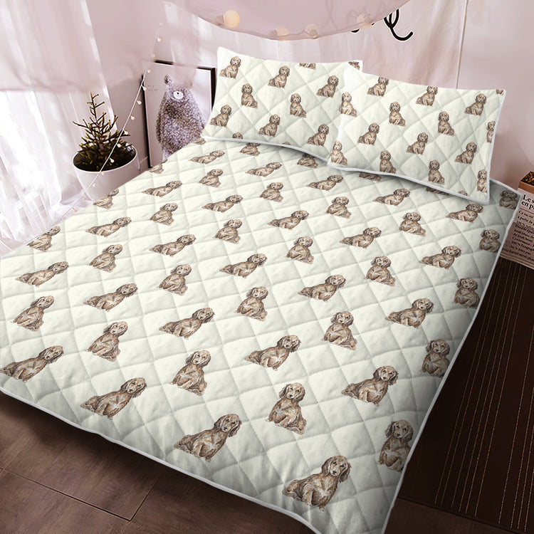 Watercolor Long Haired Chocolate Cream Dachshund Quilted Bedding Set