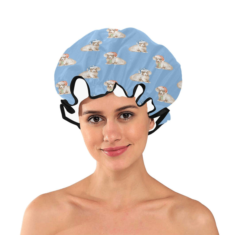 Watercolor Long Haired Wheaton Cream Dachshunds Christmas Elastic Reusable Shower Caps-Accessories-Accessories, Christmas, Dachshund, Dog Mom Gifts-LightSkyBlue-ONE SIZE-13