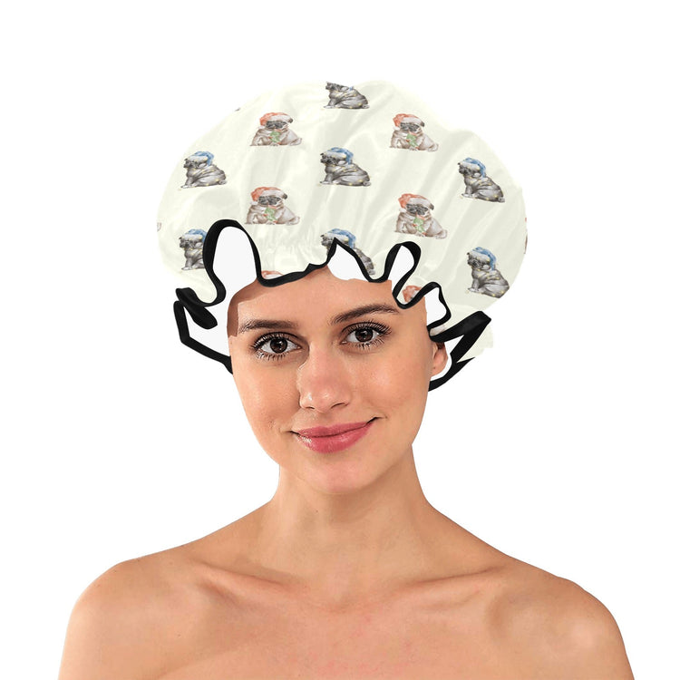 Watercolor Pug Puppies Christmas Elastic Reusable Shower Caps-Accessories-Accessories, Christmas, Dog Mom Gifts, Pug-Ivory-ONE SIZE-1