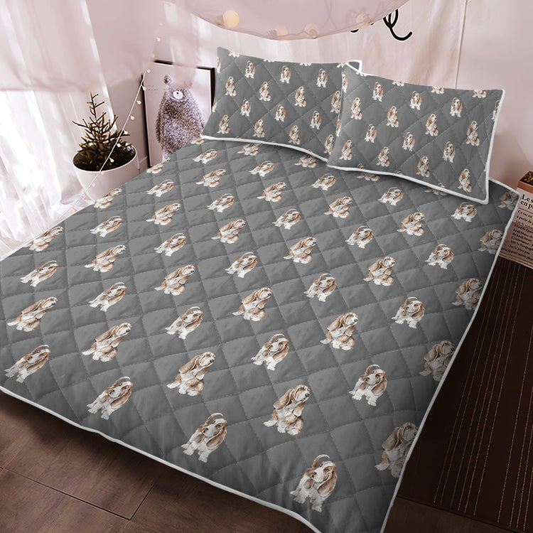 Watercolor Red and White Basset Hounds Quilted Bedding Set