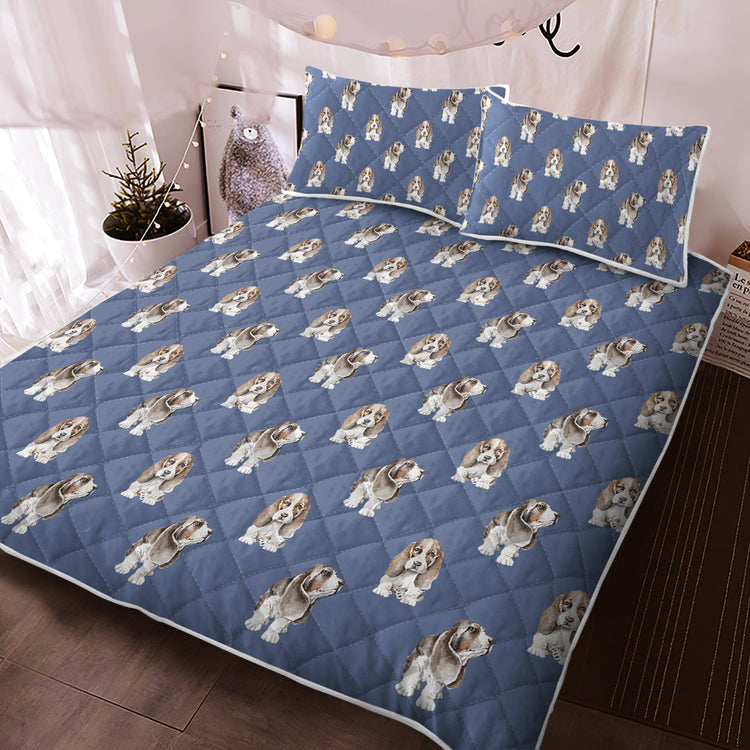 Watercolor Symphony Basset Hounds Quilted Bedding Set