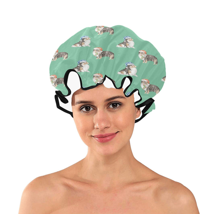 Watercolor Tri Color Shelties Collies Christmas Elastic Reusable Shower Caps-Accessories-Accessories, Christmas, Dog Mom Gifts, Rough Collie, Shetland Sheepdog-Mint Green-ONE SIZE-13