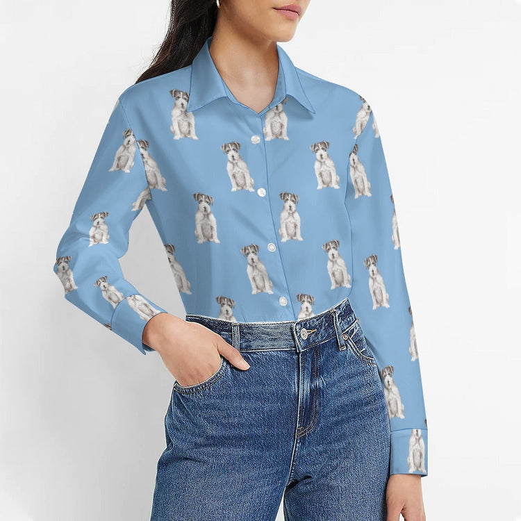 Watercolor White Black Rough Coat Russell Terriers Women's Shirt