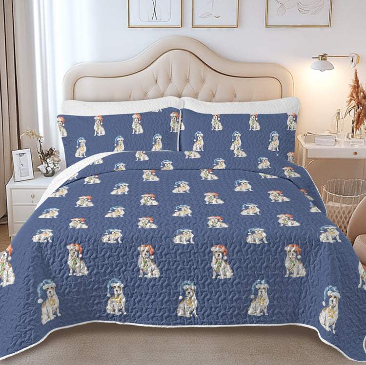 Watercolor White Tan Russell Terriers Christmas Quilted Bedding Set