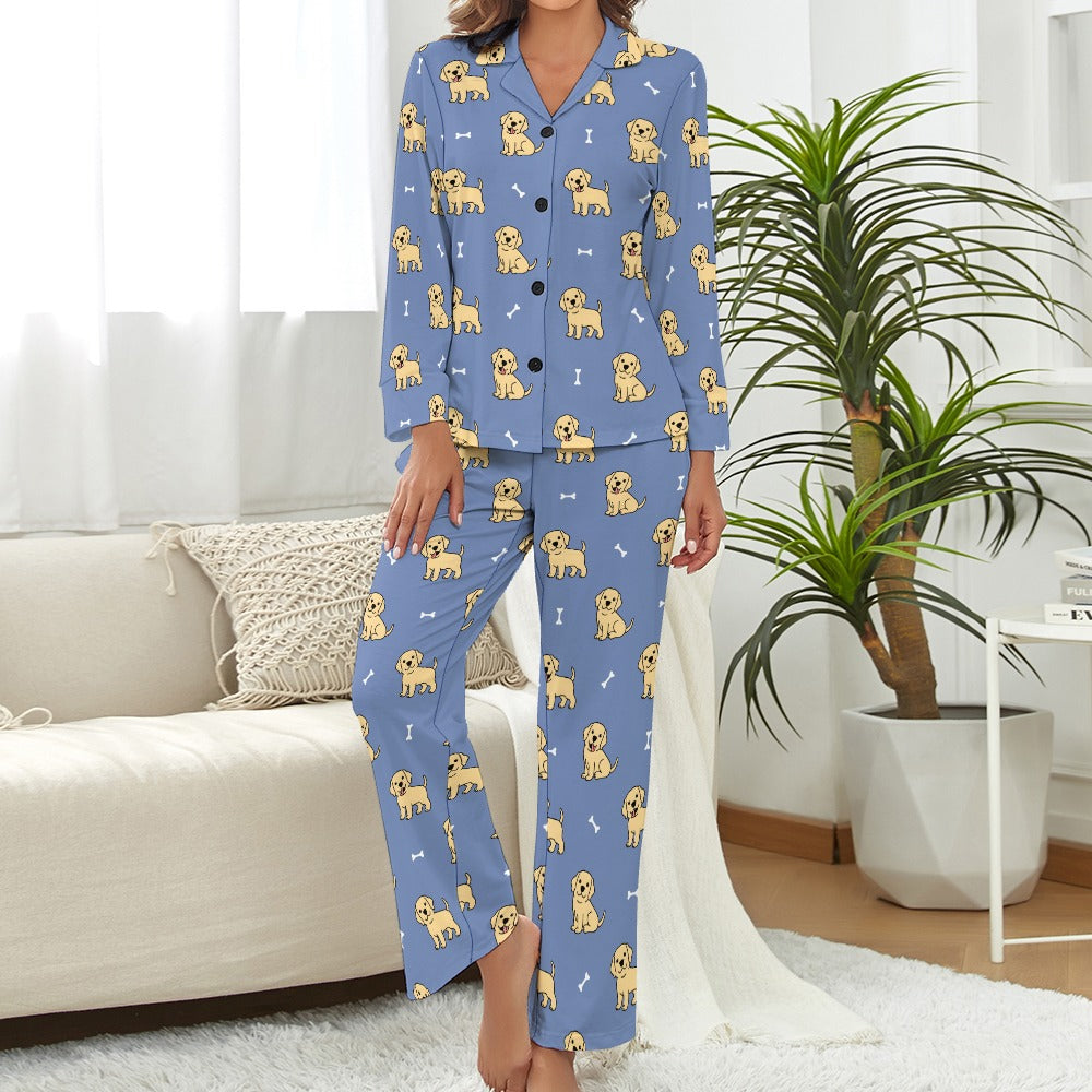 Happy Yellow Labrador Love Pajamas Set for Women-Pajamas-Apparel,Dog Mom Gifts,Labrador,Pajamas-S-CornflowerBlue-16