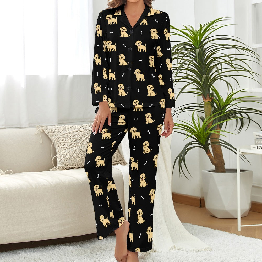 Happy Yellow Labrador Love Pajamas Set for Women-Pajamas-Apparel,Dog Mom Gifts,Labrador,Pajamas-S-Black-32