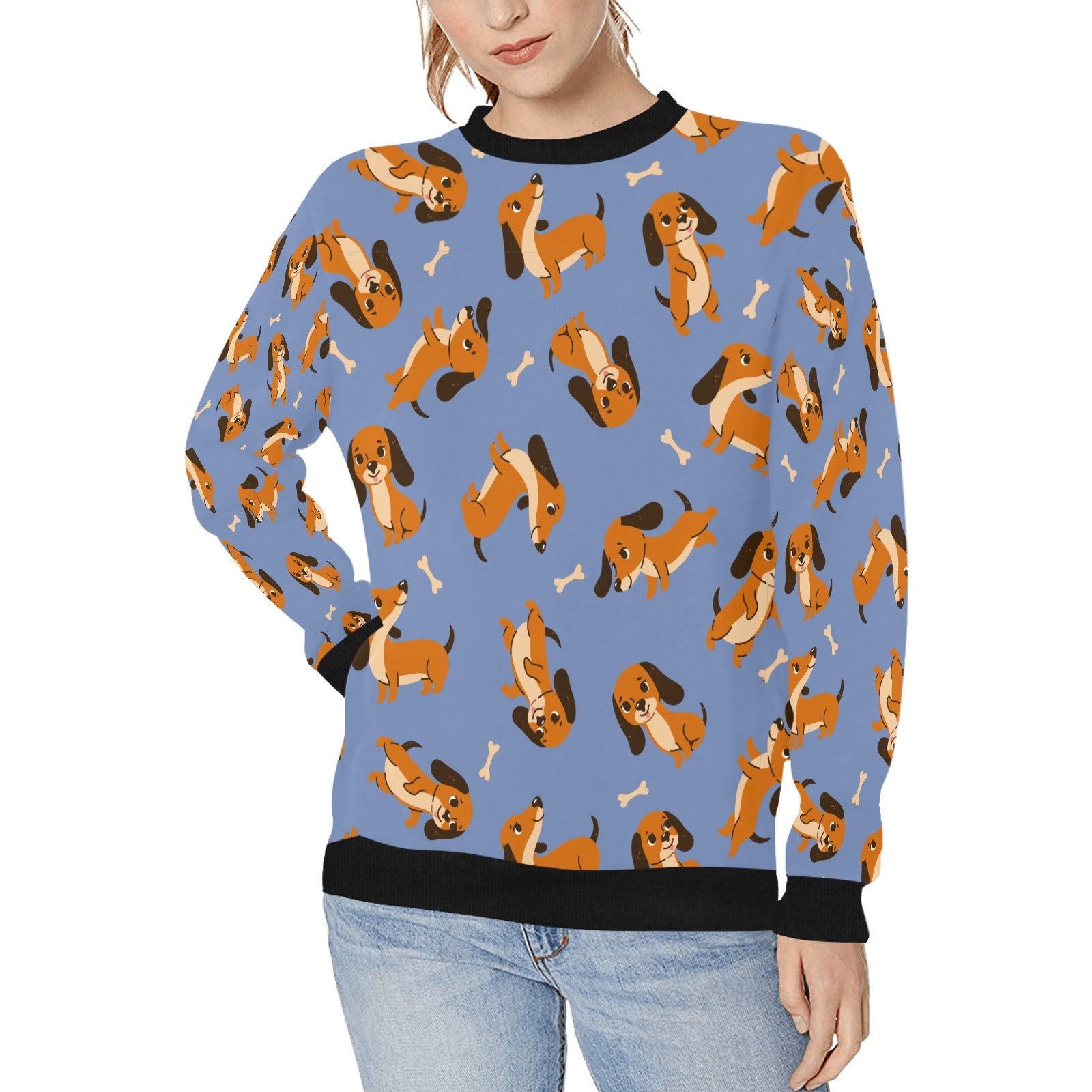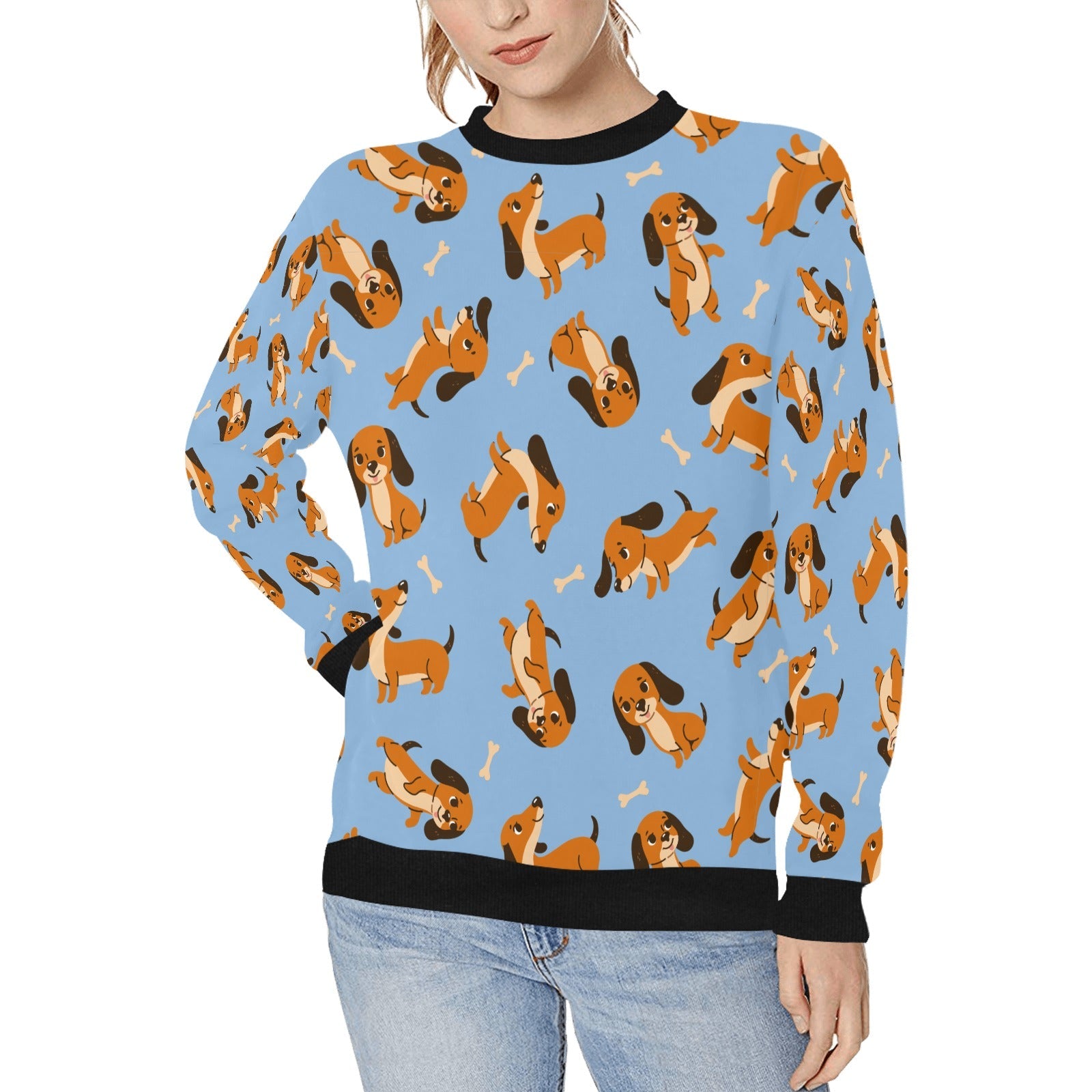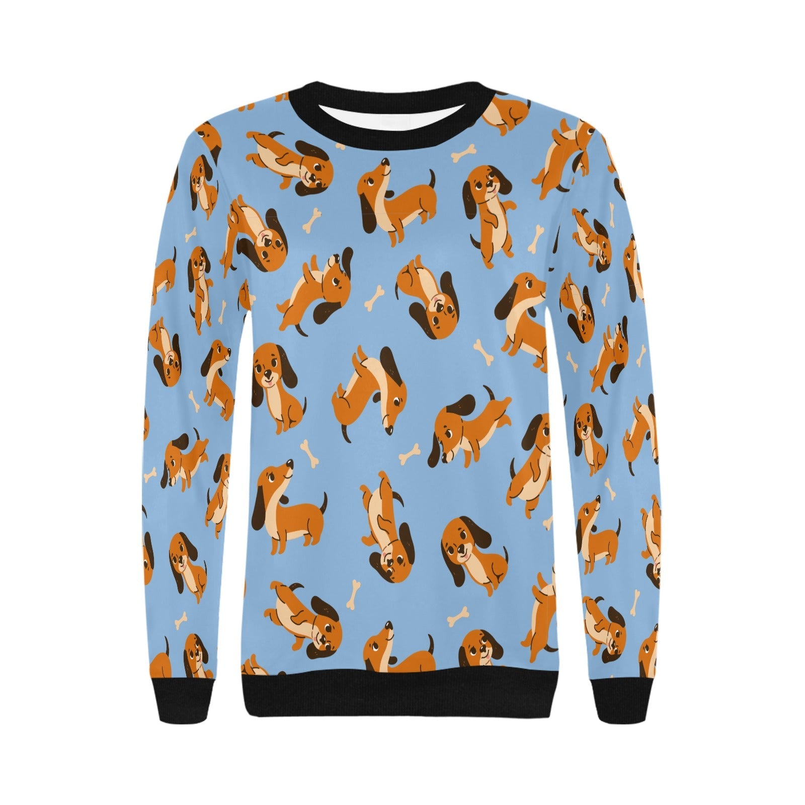 Playful Chocolate and Tan Dachshunds Sweatshirt for Women-Sky Blue-XS-13