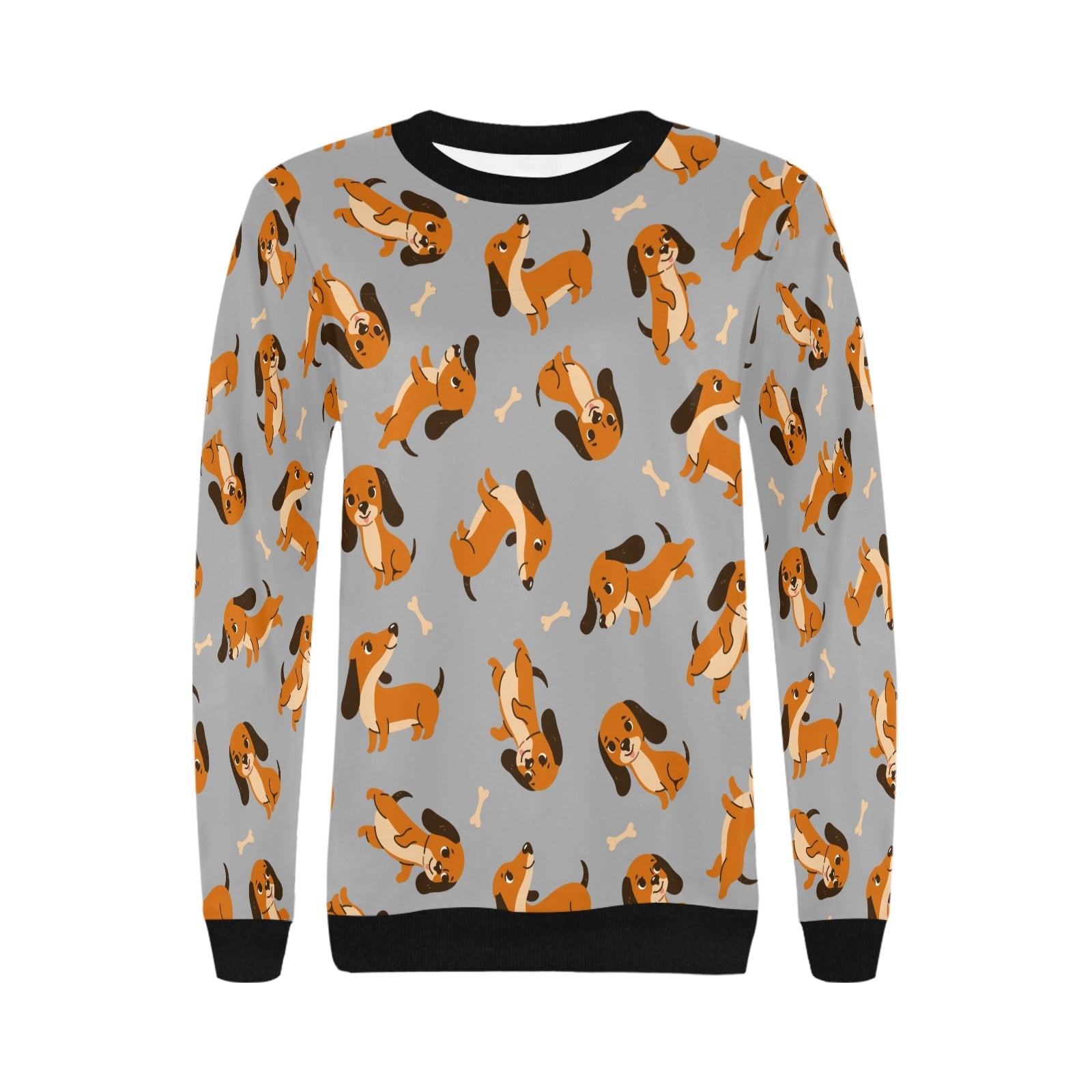 Playful Chocolate and Tan Dachshunds Sweatshirt for Women-Parisian Gray-XS-27