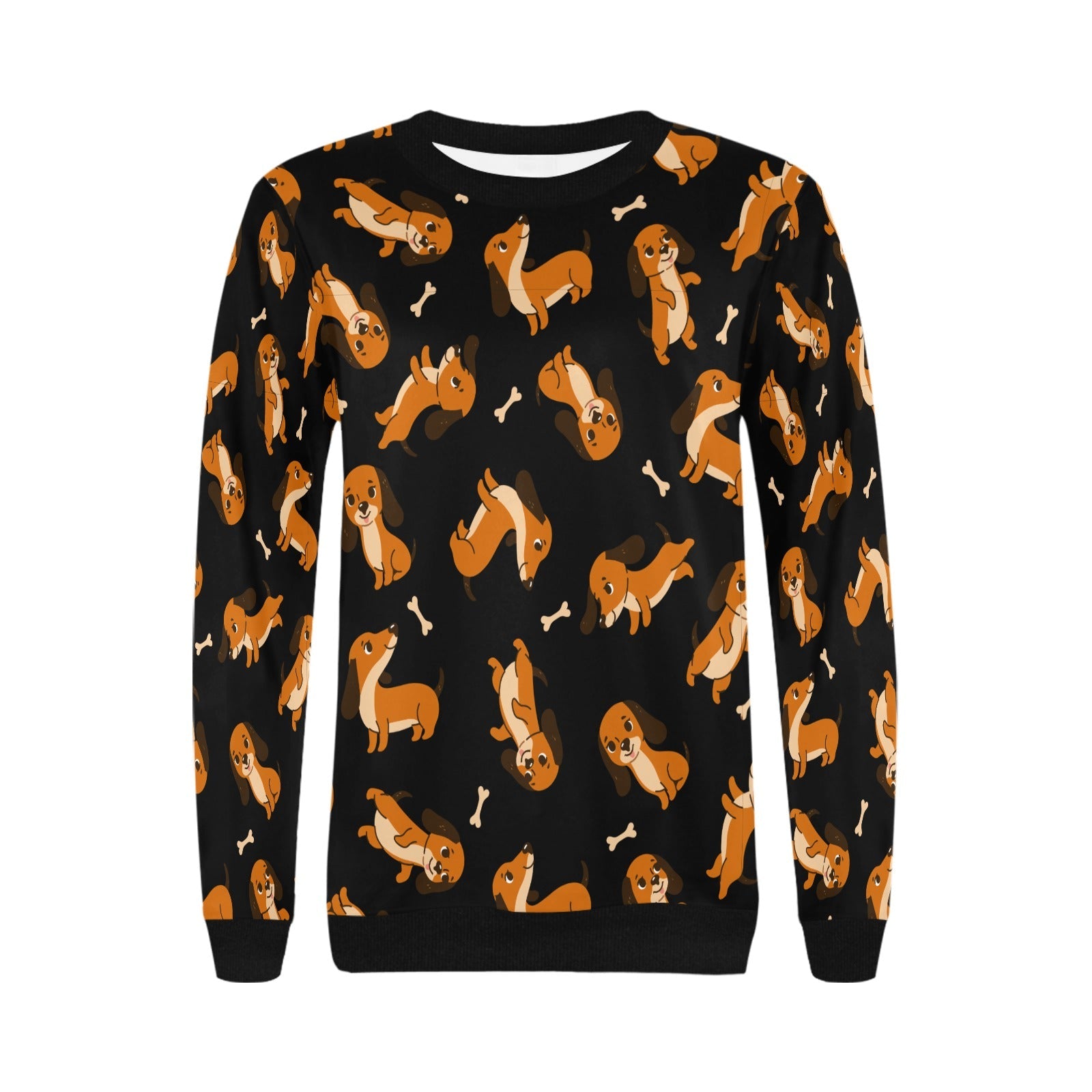 Playful Chocolate and Tan Dachshunds Sweatshirt for Women-Midnight Black-XS-32