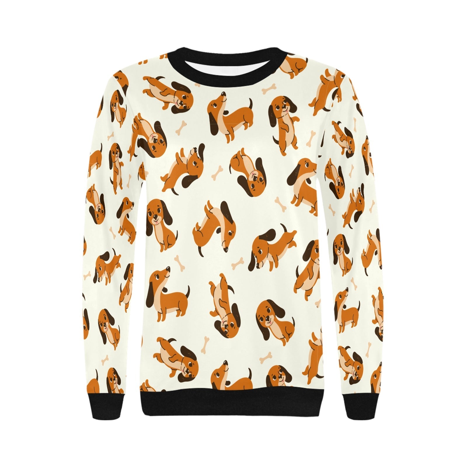 Playful Chocolate and Tan Dachshunds Sweatshirt for Women-Ivory White-XS-1