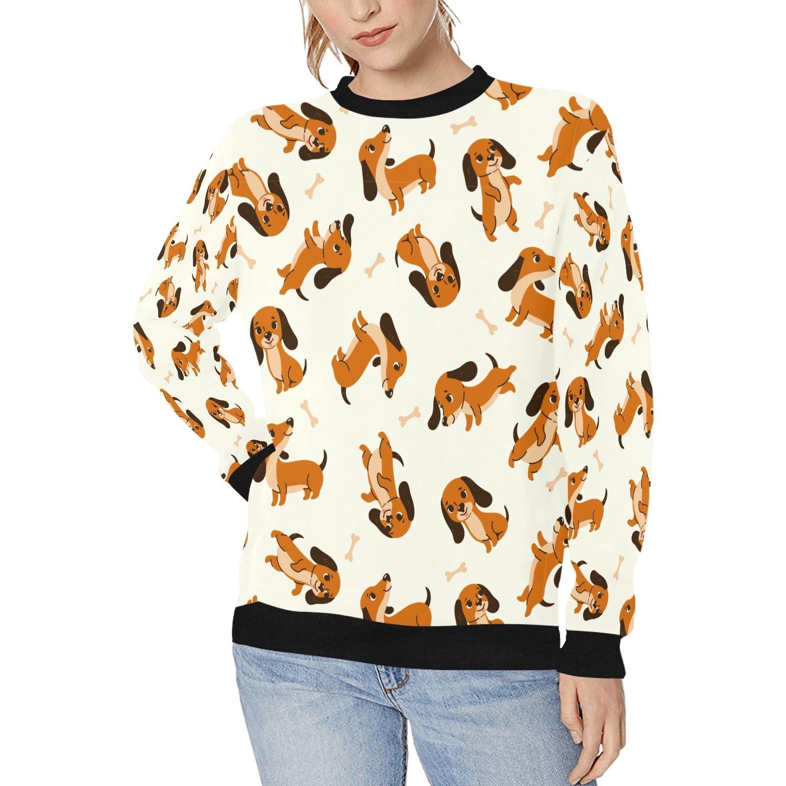 Playful Chocolate and Tan Dachshunds Sweatshirt for Women-14