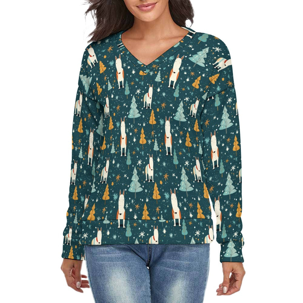 Bull Terrier Winter Magic Women's V-Neck Christmas Sweater