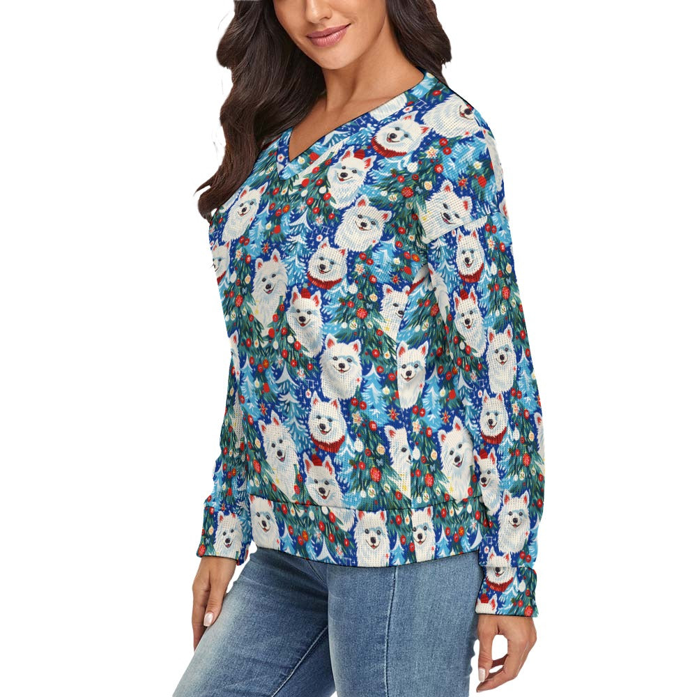 Elegant Trees Frolic American Eskies Women’s Classic V-Neck Christmas Sweater