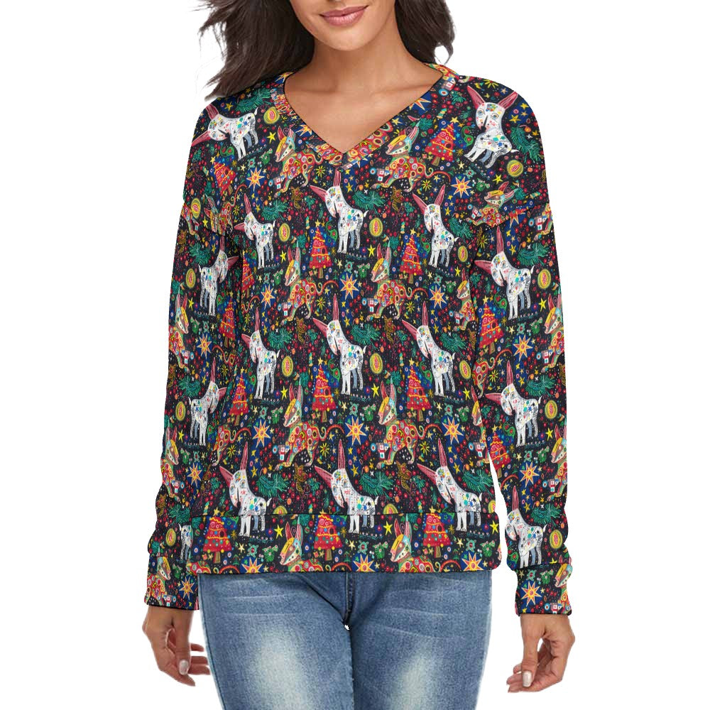 Kaleidoscopic Bull Terriers Women's V-Neck Christmas Sweater