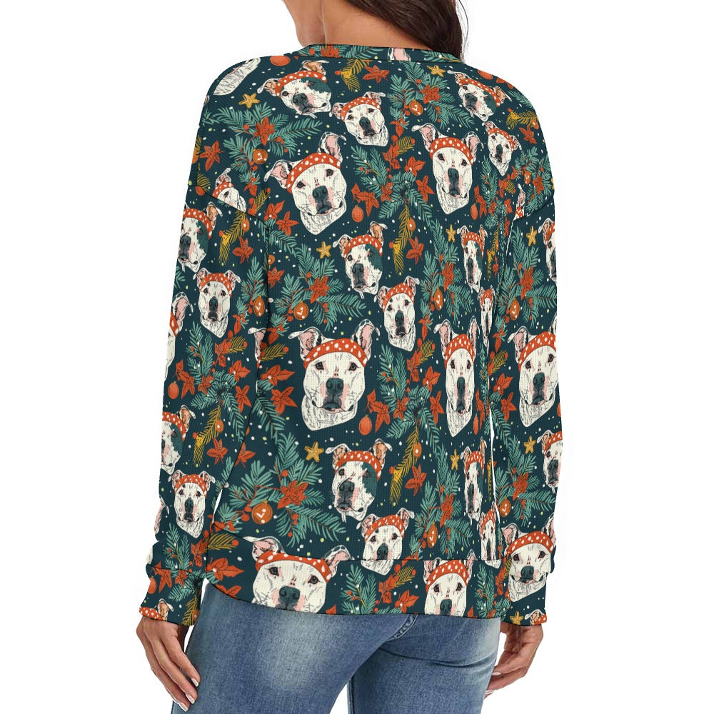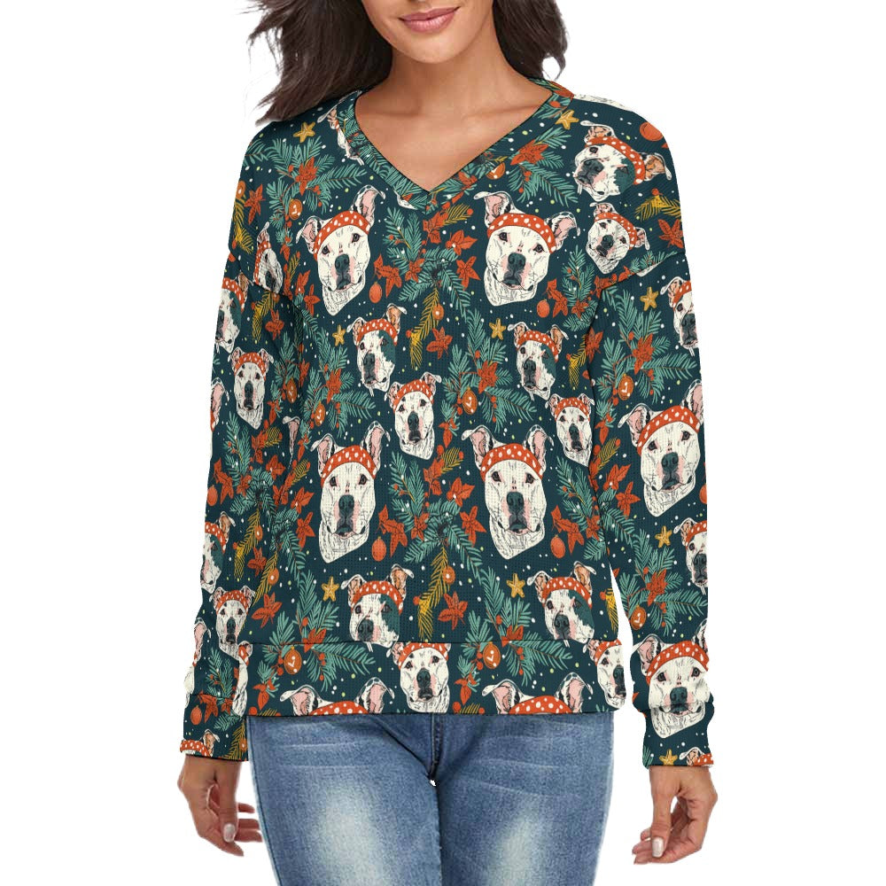 Celebrate the joy of the season with our Merry and Bright White Pit Bull Women's V-Neck Christmas Sweater!