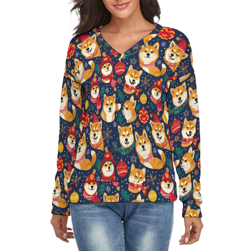 Celebrate the joy of the season with our Merry Shiba Soiree Women's V-Neck Christmas Sweater, a must-have for every Shiba Inu lover!