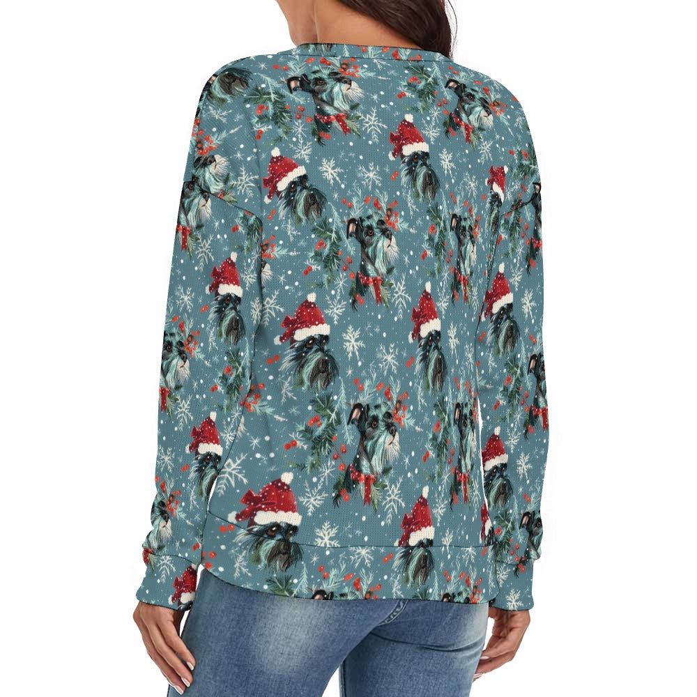 Celebrate the joy of the holiday season with our Santa Paws Schnauzer's Women's V-Neck Christmas Sweater, a perfect blend of festive spirit and cozy comfort.